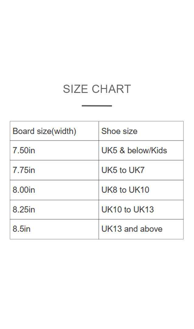 Tip: Smaller size boards are lighter and easier to flip while bigger boards provide you more stability with extra space for your feet(better for cruising).
